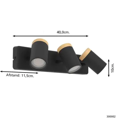 Eglo Deckenleuchte Consuma Schwarz, Braun | Geeignet für 3x GU10
