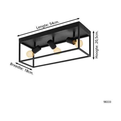 Eglo Deckenleuchte Silentina Stahl Schwarz | IP20 - Geeignet für 3x E27