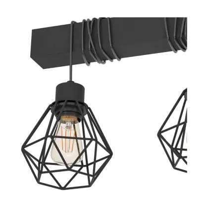 Eglo Deckenleuchte Townshend 5 Stahl Holz Schwarz | IP20 - Geeignet für 3x E27