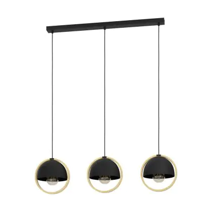 Eglo Pendelleuchte Callow Stahl Holz Schwarz Braun | IP20 - Geeignet für 3x E27