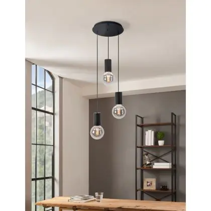 Eglo Pendelleuchte Pozueta Stahl Schwarz | IP20 - Geeignet für 3x E27
