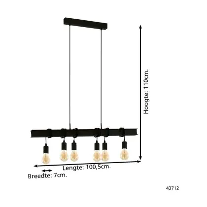 Eglo Pendelleuchte Townshend 6 Stahl Schwarz | IP20 - Geeignet für 6x E27