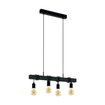 Eglo Pendelleuchte Townshend Stahl Holz Schwarz | IP20 - Geeignet für 4x E27