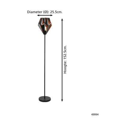 Eglo Stehlampe Carlton 1 Stahl Schwarz Bernstein | IP20 - Geeignet für 1x E27