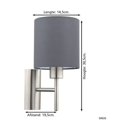 Eglo Wandleuchte Pasteri Stahl Satin-Nickel | IP20 - Geeignet für 1x E27