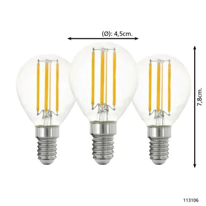 Mehrfachpackung 3x Eglo LED Kugel E14 Fadenlampe Klar 21W 806lm - 827 Extra Warmweiß | Ersatz Für 60W
