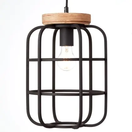 Brilliant Gwen Suspension Luminaire Métal Bois Noir | 250mm - Convient pour 1x E27