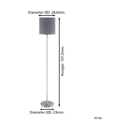 Eglo Lampadaires Salon Pasteri Échantillon Nickel Satiné Gris | IP20 - Convient pour 1x E27