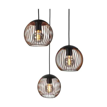 Eglo Suspension Luminaire Almanzora Échantillon Noir Cuivre | IP20 - Convient pour 3x E27