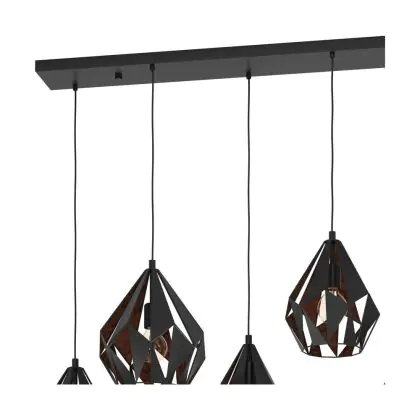 Eglo Suspension Luminaire Carlton 1 Échantillon Noir Cuivre | IP20 - Convient pour 6x E27