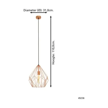 Eglo Suspension Luminaire Carlton Échantillon Cuivre | IP20 - Convient pour 1x E27