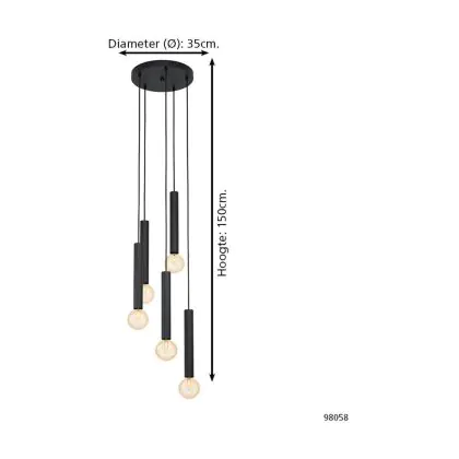 Eglo Suspension Luminaire Corteva Échantillon Noir | IP20 - Convient pour 5x E27