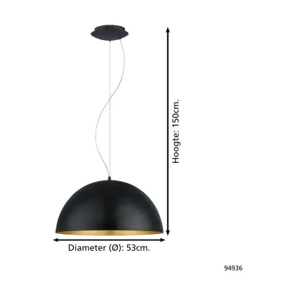 Eglo Suspension Luminaire Gaeta 1 Échantillon Noir Dorée | IP20 - Convient pour 1x E27