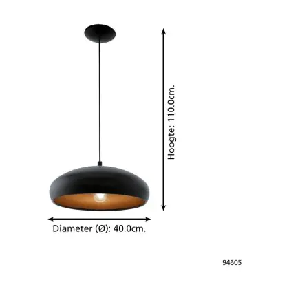 Eglo Suspension Luminaire Moga 1 Échantillon Noir Cuivre | IP20 - Convient pour 1x E27
