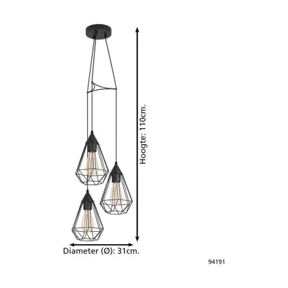 Eglo Suspension Luminaire Tarbes Échantillon Noir | IP20 - Convient pour 3x E27