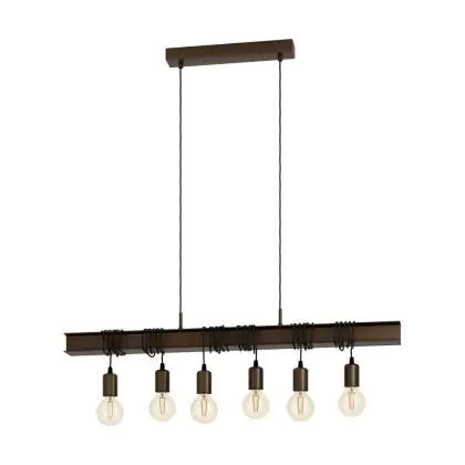 Eglo Suspension Luminaire Townshend 4 Échantillon Brun Noir | IP20 - Convient pour 6x E27
