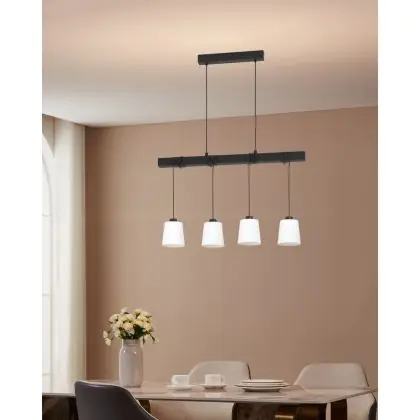 Eglo Suspension Luminaire Townshend 8 Échantillon Bois Noir | IP20 - Convient pour 4x E27