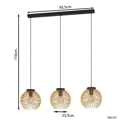 Eglo Suspension Luminaire Venezuela Noir, Dorée | Convient pour 3x E27