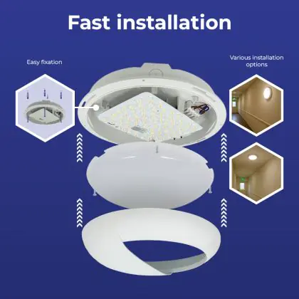Description Hublot LED Pro V2 12/16/20W 2400lm - 830-840-865 CCT | 325mm - IP65 - Éclairage De Secours 3 Heures + Visière Cercle Blanc