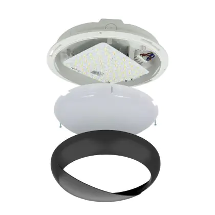 Le Hublot LED Pro V2 12/16/20W 2400lm - 830-840-865 CCT | 325mm - IP65 + Visière Cercle Noir peut très bien être appliqué au mur qu’au plafond. Ce hublot est un luminaire étanche principalement installé dans les lieux de passages. Avec sa technologie LED Intégré, le hublot Budgetlight à un faible impact sur l’environnement et à une durée de vie pouvant tenir jusqu’à 100000 heures. Ce hublot peut également être installé en extérieur et est capable de supporter des températures extrêmes.  Il offre une couleur de lumière de 3000K - 4000K - 6000K CCT et un flux lumineux de 2400 Lm.