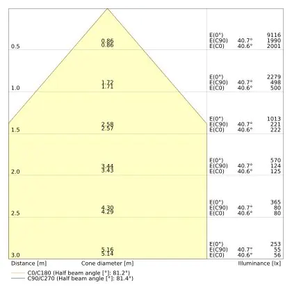 ![]() Le code couleur se compose de l'indice de rendu des couleurs (IRC) et de la température de couleur (Kelvin). Le premier chiffre indique le rendu des couleurs (1 = très mauvais rendu des couleurs, 9 = meilleure authenticité des couleurs). Le deuxième et troisième chiffre indiquent la température de la couleur. Exemple : Le code couleur "830" indique que la lampe a un bon rendu des couleurs (8) et une couleur de lumière blanche chaude (30 = 3000K). |