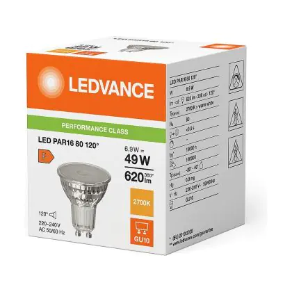 Lot 10x Ledvance Performance Spot LED Réflecteur GU10 PAR16 6.9W 620lm 120D - 827 Blanc Très Chaud | Remplacement 80W