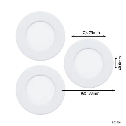 Lot 3x Eglo Encastré Spot Fueva 6 Plastique Blanc 11.1W 1350lm - 827-840-865 CCT est un spot LED encastrable. Ce luminaire est conçu pour un éclairage d’accentuation pour un usage domestique ou bien professionnel. LED Intégré, ce spot LED Eglo en Plastic a besoin d’une place nécessaire de mm de largeur et mm de profondeur. Ce luminaire est compatible avec une ampoule GU10, il est important de faire attention si vous décidez de changer d’ampoule.