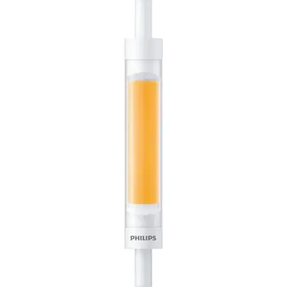 Philips Corepro LED Lineair R7s 118mm 7.2W 810lm - 830 Blanc Chaud | Équivalent 60W est une ampoule tubulaire linéaire à double extrémité. Ce type d’ampoule permet de délivrer une lumière homogène à 360° avec comme température de couleur 3000K - Blanc Chaud. Cette ampoule LED R7s de chez Philips est la solution idéale pour le remplacement de vos anciennes ampoules halogènes. Cette ampoule LED n’a pas besoin de transformateur, elle fonctionne avec 230V et peut se connecter directement sur le secteur électrique.