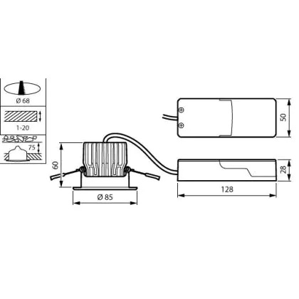 La découpe d'un luminaire diffère des dimensions et fait spécifiquement référence à la taille du trou dans le plafond nécessaire pour fixer solidement la source lumineuse lors de l'installation.